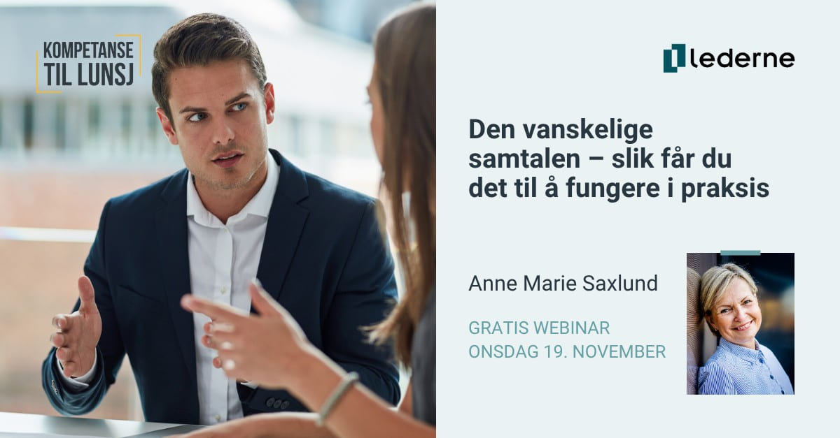 Mange gruer seg til vanskelige samtaler – og utsetter dem. Dette webinaret gir deg konkrete metoder og trygge rammer for å gjennomføre krevende samtaler på en måte som virker.