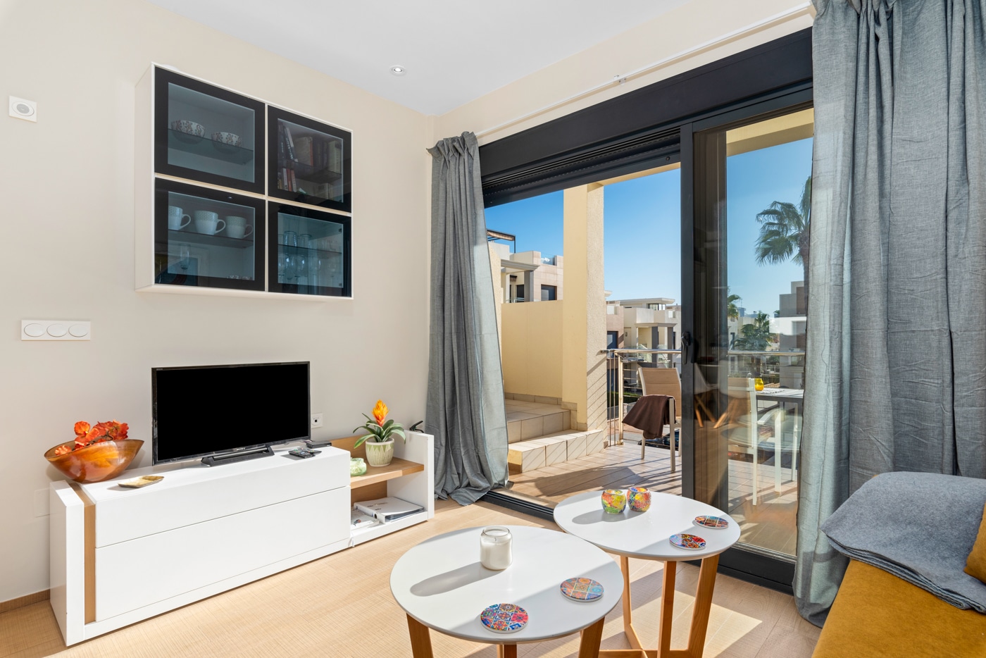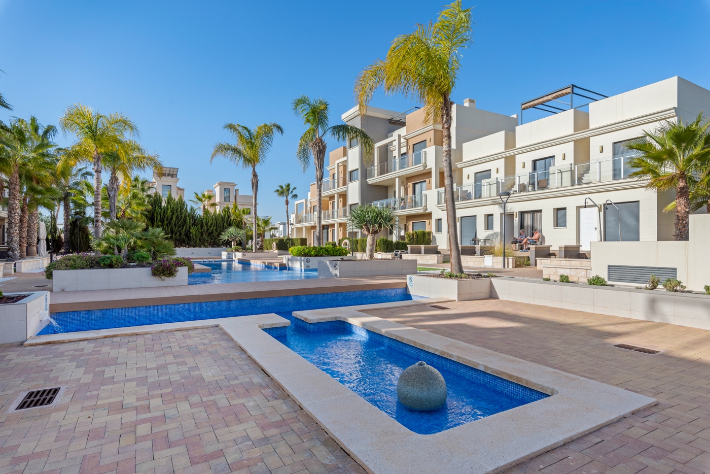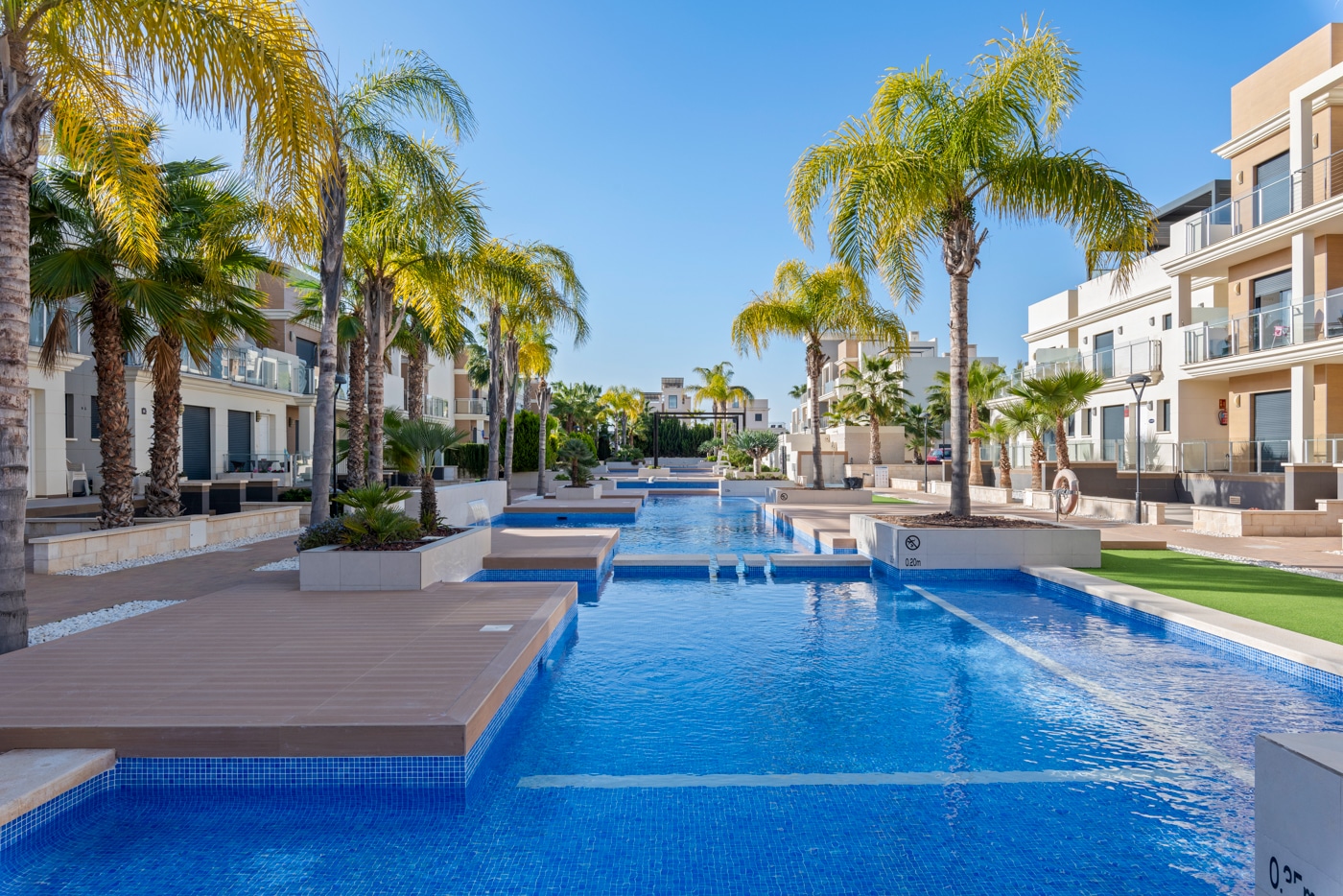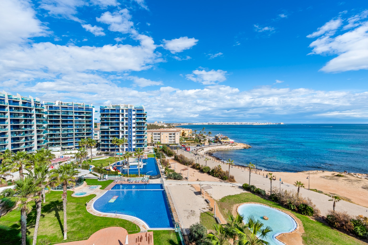 Leiligheten ligger i gangavstand fra stranden Zenia Beach og et steinkast fra det enorme kjøpesenteret Zenia Boulevard – et av Spanias største – samt restauranter. To soverom, to bad. Alle fasiliteter. Nyinnredet og moderne. Takterrasse. Ikke lekeplass. Flott opparbeidet uteområde, basseng med varierende dybde (ikke oppvarmet). Alle fasiliteter.