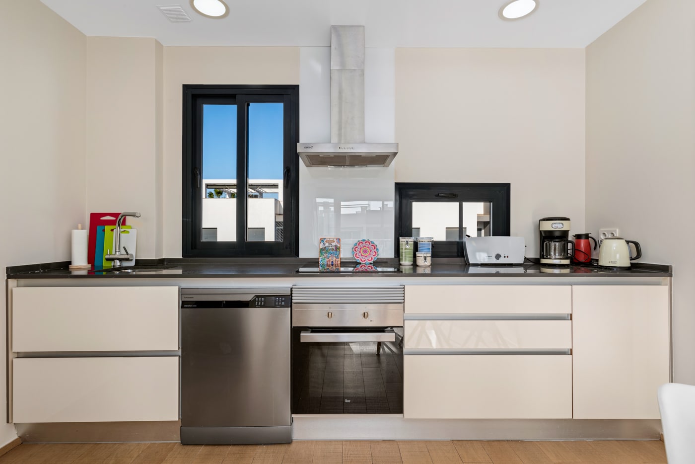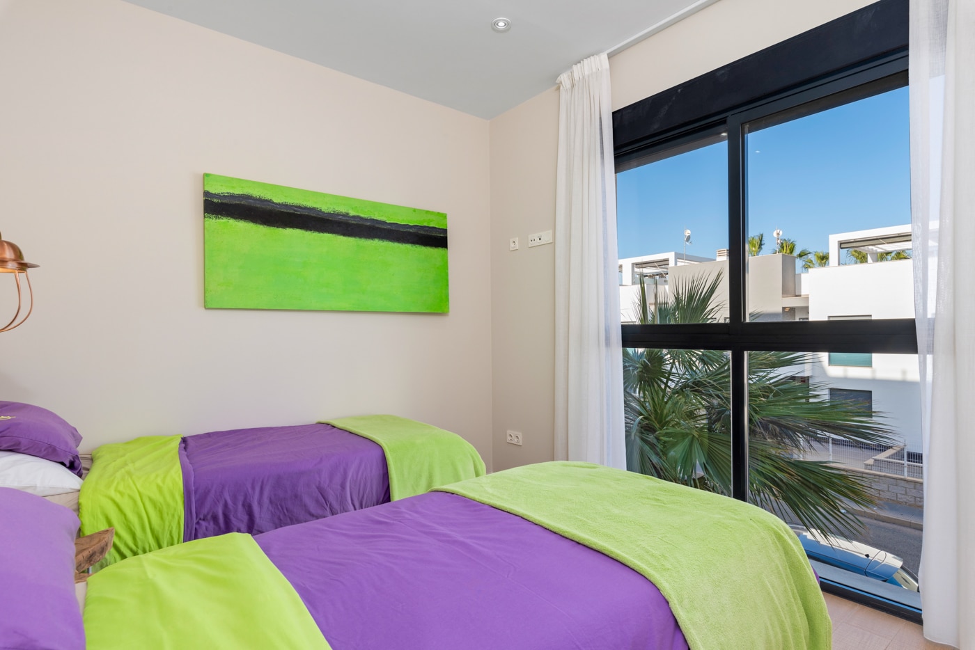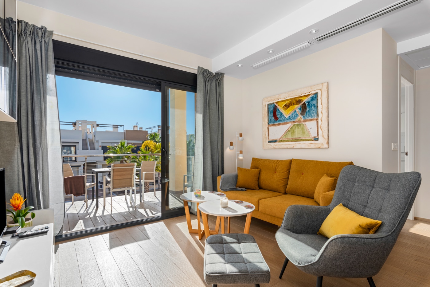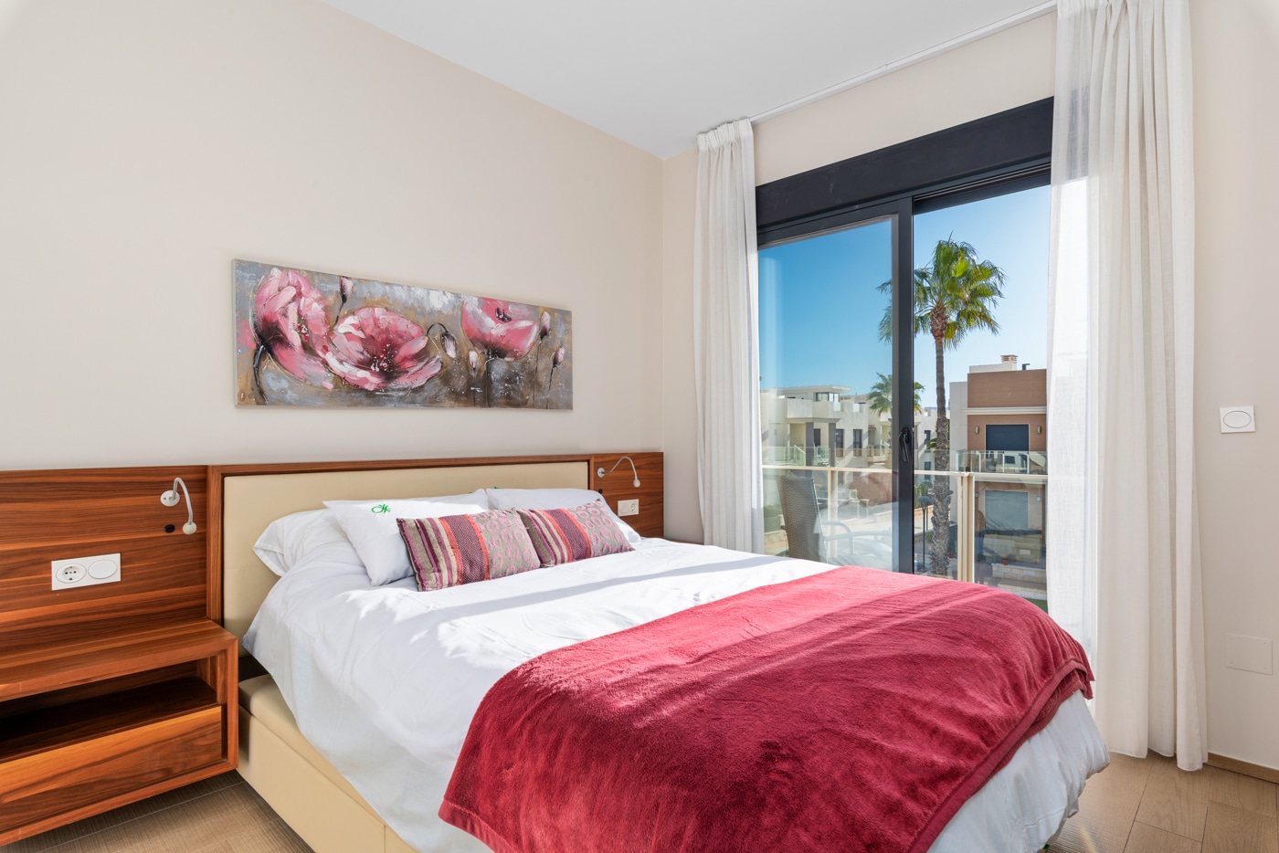 Leiligheten ligger i gangavstand fra stranden Zenia Beach og et steinkast fra det enorme kjøpesenteret Zenia Boulevard – et av Spanias største – samt restauranter. To soverom, to bad. Alle fasiliteter. Nyinnredet og moderne. Takterrasse. Ikke lekeplass. Flott opparbeidet uteområde, basseng med varierende dybde (ikke oppvarmet). Alle fasiliteter.