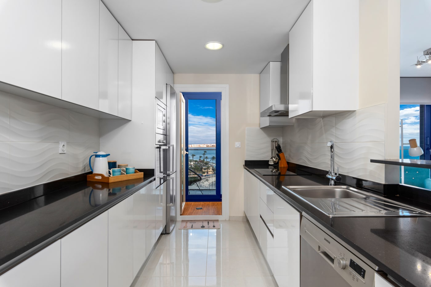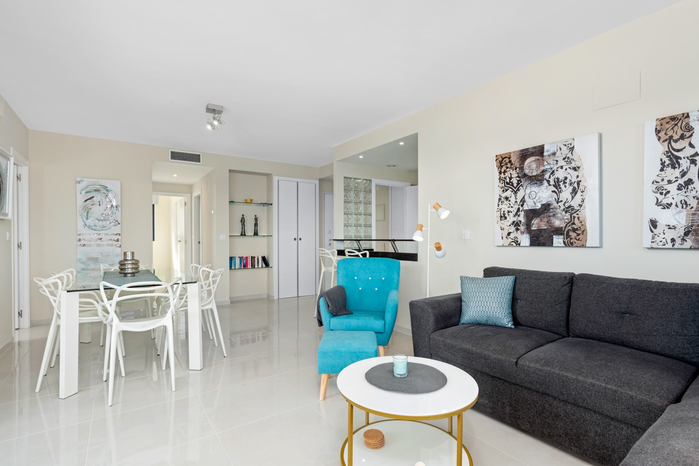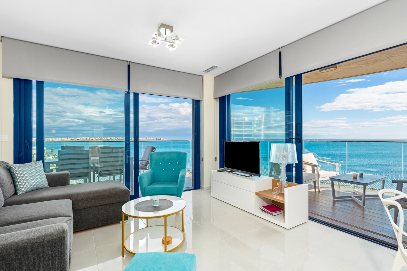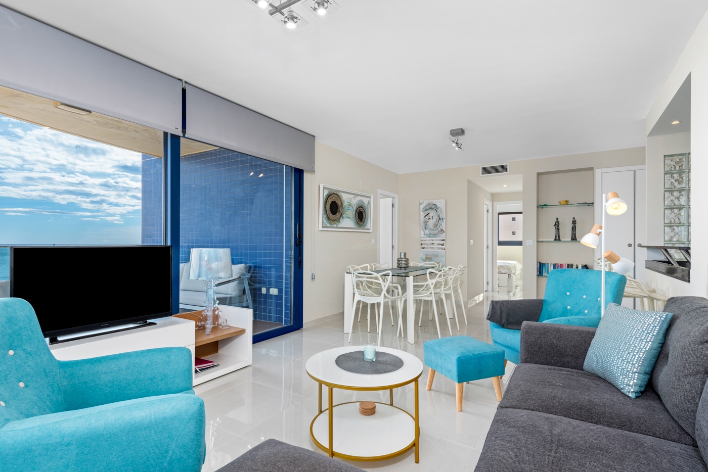 Leiligheten ligger ved strandpromenaden i sjette etasje med to flotte balkonger, sol hele dagen og spektakulær hav- og byutsikt. Alle fasiliteter. Tre soverom, to bad. Nyinnredet og moderne. Nær kjøpesenter og restauranter. Spektakulært opparbeidet uteområde med lekeplass og basseng med varierende dybde – oppvarmet hele året.