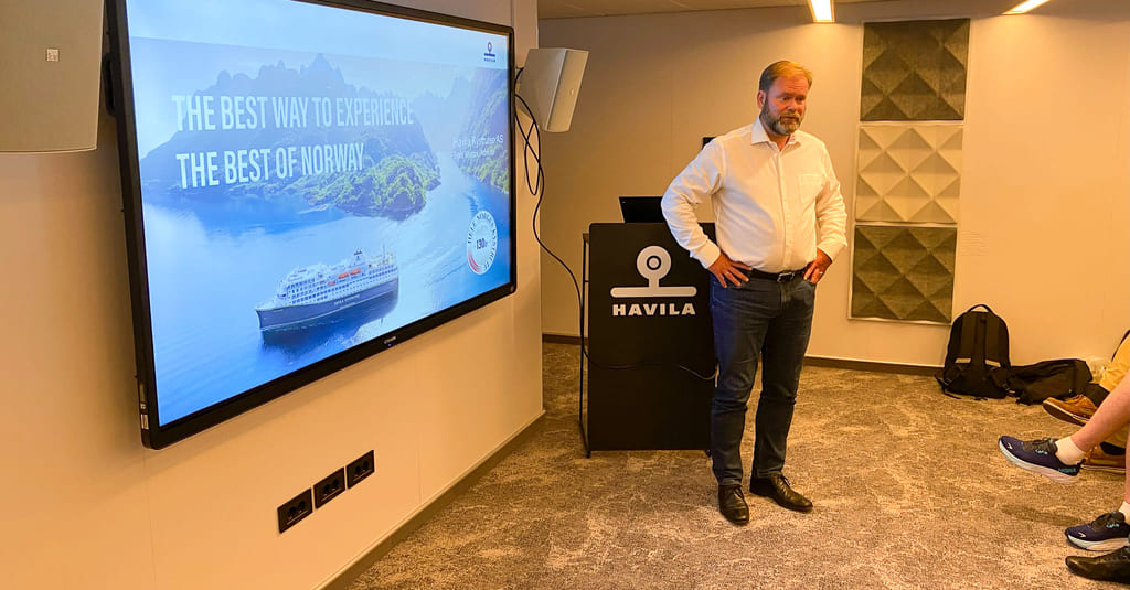 Havila Kystruten-sjef Bent Martini holdt deretter et interessant foredrag om selskapet, og de nye, innovative og bærekraftige skipene deres. Disse blir drevet frem av en blanding av verdens største batteripakker til passasjerskip, og naturgass. I tillegg er forberedt til hydrogen, når den tid kommer. Skipene kan seile i fire timer på ren batteridrift, og er da nærmest lydløse. To skip er i drift, mens to andre avventer ferdigstillelse i nær fremtid.