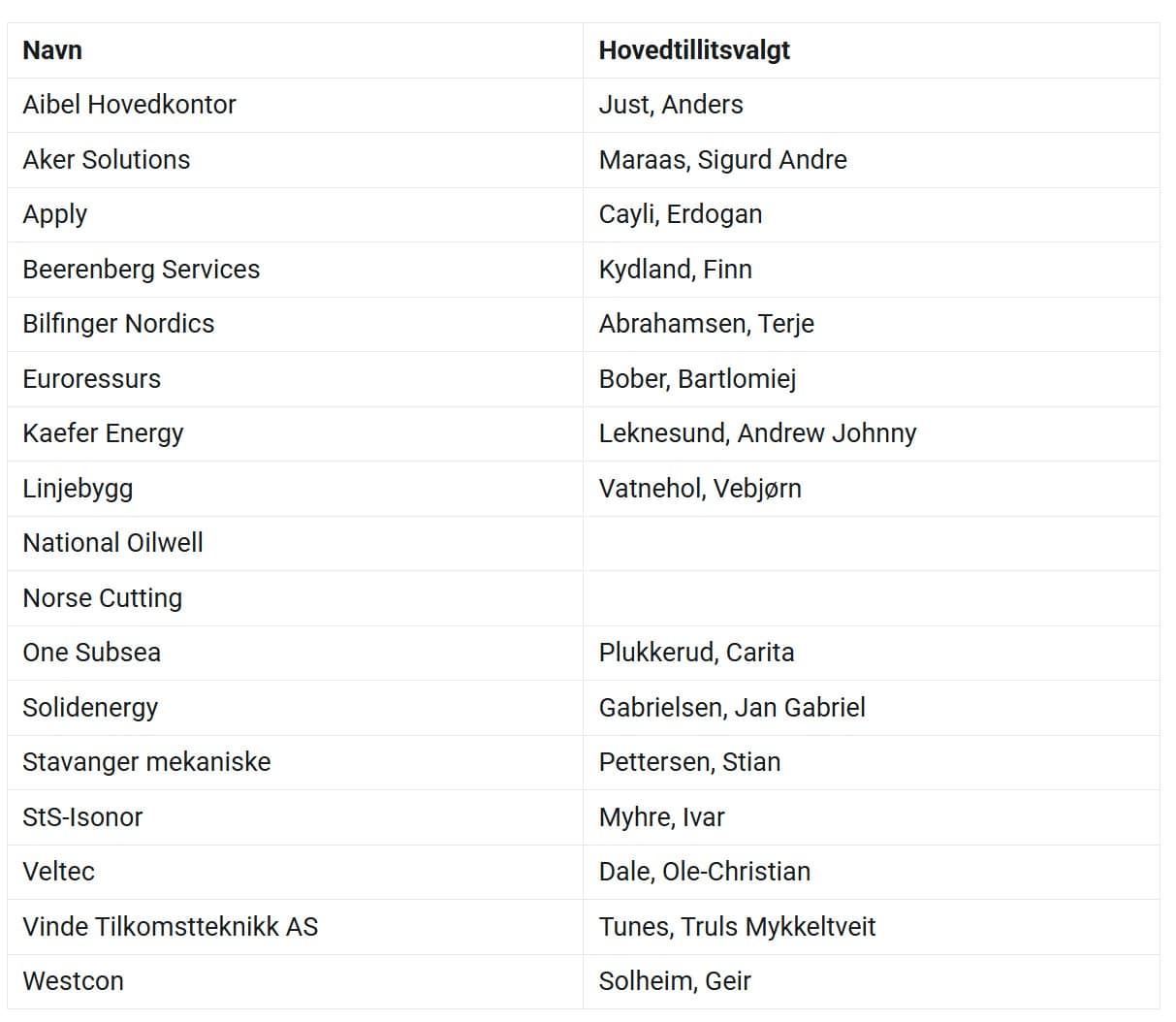 Avdelingen har per i dag bedriftsgrupper i følgende bedrifter: